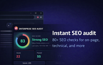 The Enterprise SEO Auditor is a free Chrome extension designed to provide in-depth SEO analysis for any webpage. It features over 80 SEO checks that cover essential aspects such as on-page content, technical SEO, link health, and performance metrics. Users can instantly audit any webpage and receive actionable insights, making it a valuable tool for SEO professionals and digital marketers alike. The interface is clean and modern, equipped with a dark mode option for enhanced usability.
